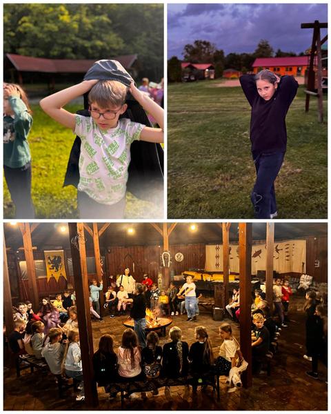 Wieczorem wszyscy spotkali się przy ognisku. Było pieczenie kiełbasek, wspólne śpiewy i tańce. Atmosfera była wyjątkowa – pełna radości, śmiechu i integracji.