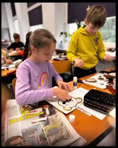 Zainspirowani historią dzielnego niedźwiedzia, uczniowie klasy 3D podczas zajęć plastycznych stworzyli prace przedstawiające Wojtka. Każdy z nich wykorzystał dowolną technikę - od rysunku, po kolaże - by oddać charakter tej niezwykłej postaci. Efekty były zachwycające: pełne emocji, kolorów i wyobraźni dzieła ozdobiły klasową gazetkę, przypominając wszystkim, że nawet niedźwiedź może być bohaterem.