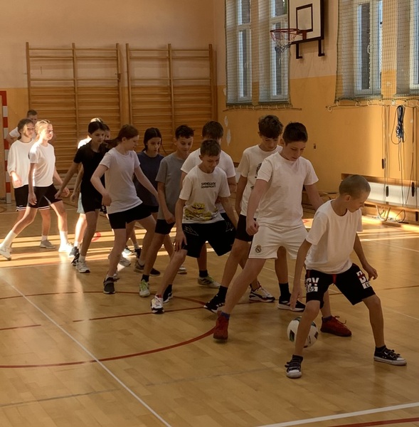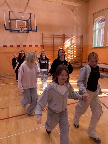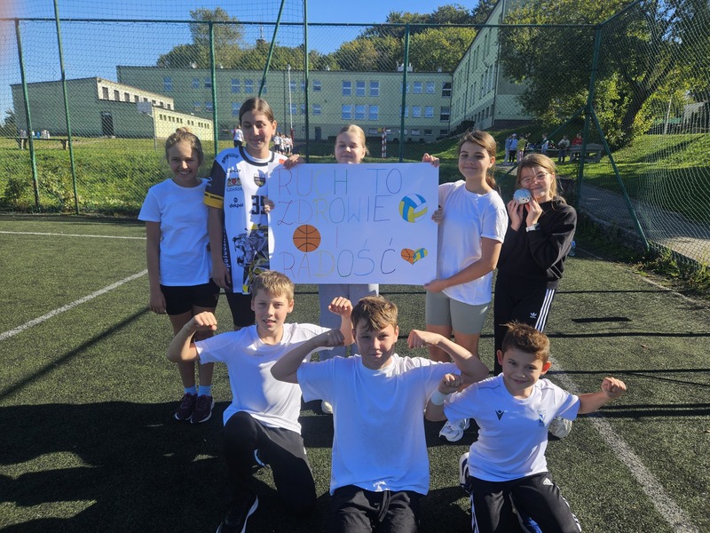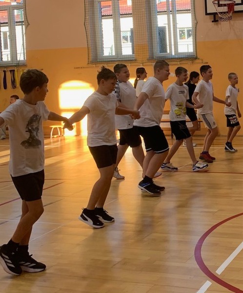 Klasy 6-8 rozpoczęły ten dzień wspólną rozgrzewką taneczną. Pojawili się również chętni uczniowie i uczennice, którzy odtańczyli Belgijkę. Jeszcze inni przy muzyce wirowali i tańczyli. Na lekcjach wychowania fizycznego organizowane były różnego rodzaju aktywności fizyczne. Uczniowie uczestniczyli w różnorodnych zabawach i konkurencjach sportowych. Biorący udział w tym wydarzeniu wykazali się wielkim zaangażowaniem. Z ogromnym entuzjazmem podchodzili do zadań sportowych. Był to bardzo pozytywny dzień pełen ruchu, zabawy i pozytywnej energii. Przebiegał w radosnej atmosferze, której towarzyszyły dobre emocje i sportowy duch. Wszyscy byliśmy razem, w myśl idei „Ruch łączy”. Pokazaliśmy, że razem możemy więcej.
