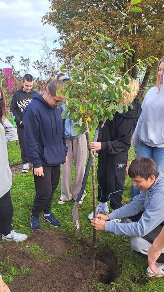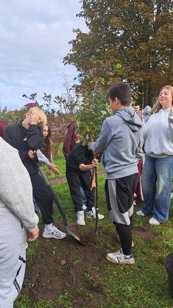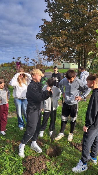 W październiku świętowaliśmy Dzień Drzewa. Nasze działania miały na celu zwiększenie świadomości uczniów, jak istotną rolę pełnią drzewa i inne rośliny w życiu i funkcjonowaniu naszej planety. Uczniowie klas 4 poznali drzewa i krzewy najbliższej okolicy. Wykonali prace, które w przyszłości pozwolą im rozpoznać dany gatunek. W szkolnym ogrodzie uczniowie kl 7 posadzili oczar, niezwykłą roślinę kwitnącą w okresie zimowym i wykorzystywaną w preparatach kosmetycznych ze względu na właściwości ściągające. Następnie, na lekcjach chemii, próbowali wyekstrahować olejki eteryczne znajdujące się w liściach mięty oraz rozdzielić barwniki roślinne. W tym celu wykorzystali poznane na lekcjach metody rozdziału mieszanin.