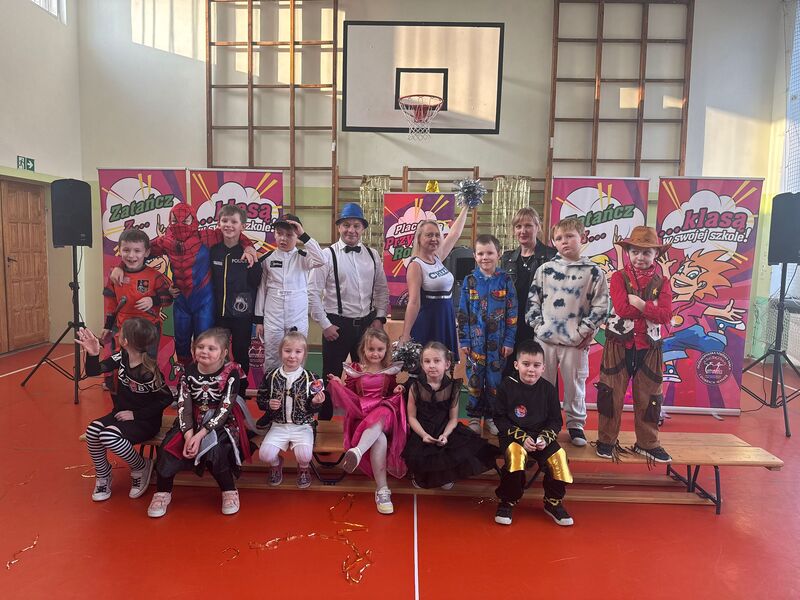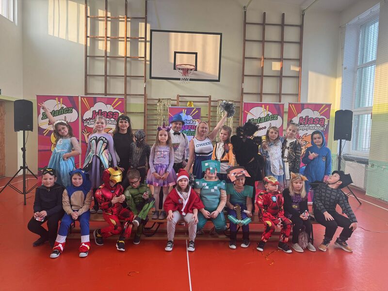 22 stycznia szkolna sala zamieniła się w prawdziwą salę balową. Muzyka zachęcała do tańca, a uśmiechy nie schodziły z twarzy uczniów. Można było spotkać księżniczki, piosenkarki, superbohaterów, postacie gier, wróżki, zwierzątka czy rycerzy. Każdy strój był wyjątkowy i pokazywał dziecięcą kreatywność oraz pomysłowość rodziców.