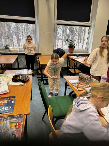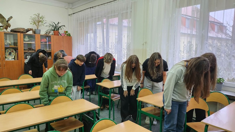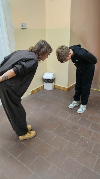 Spróbowaliśmy dziś kłaniać się do siebie, dziękując, mówić do widzenia, odchodząc od tablicy, mijając się na korytarzu. Do ukłonu dodawaliśmy uśmiech.