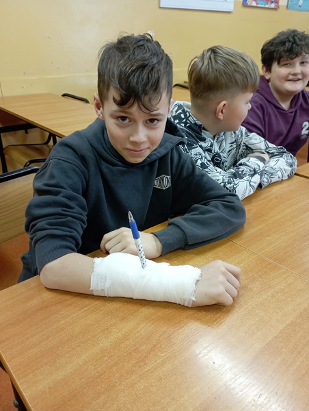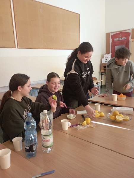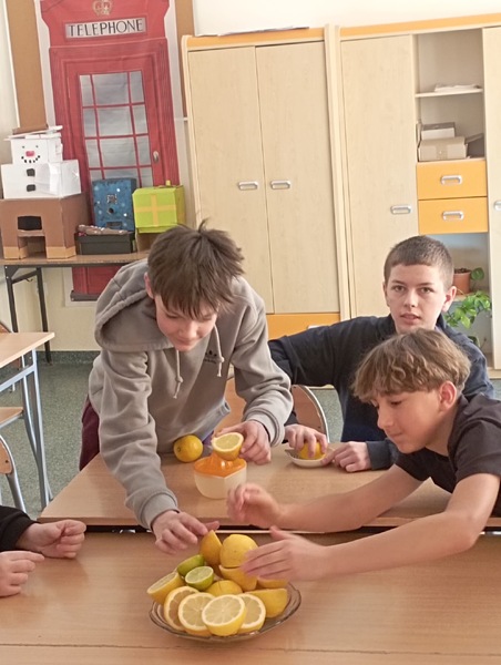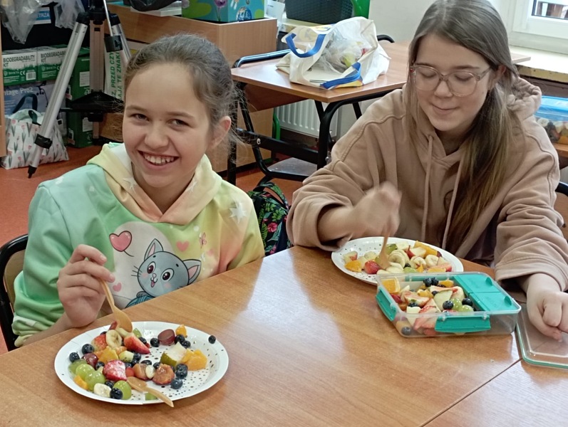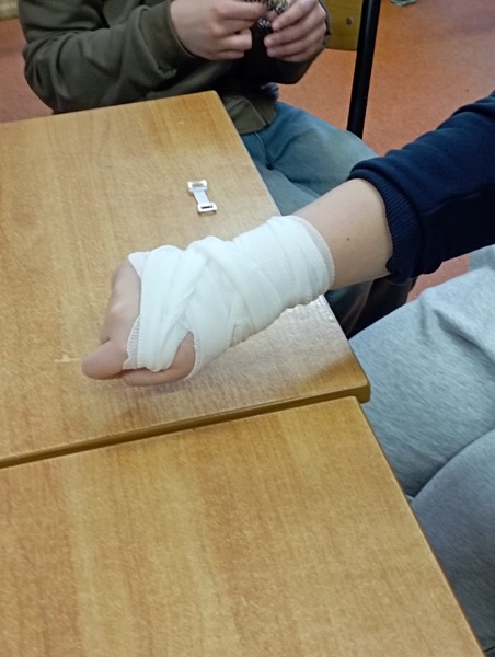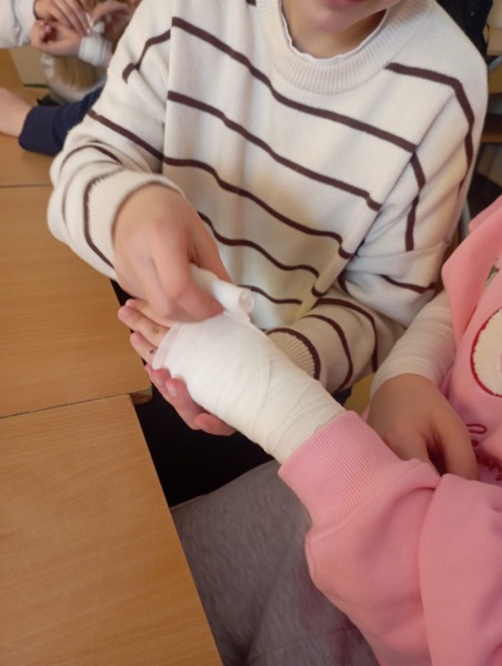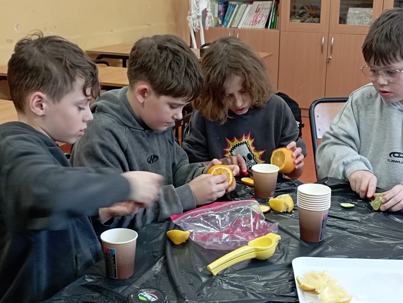 Na zajęciach z edukacji zdrowotnej dzieje się wiele ciekawych wydarzeń. Kolejne lekcje praktyczne, a więc nauka bandażowania ran ciętych i kłutych oraz przygotowanie sałatki owocowej na drugie śniadanie oraz orzeźwiającej lemoniady z cytrusów.