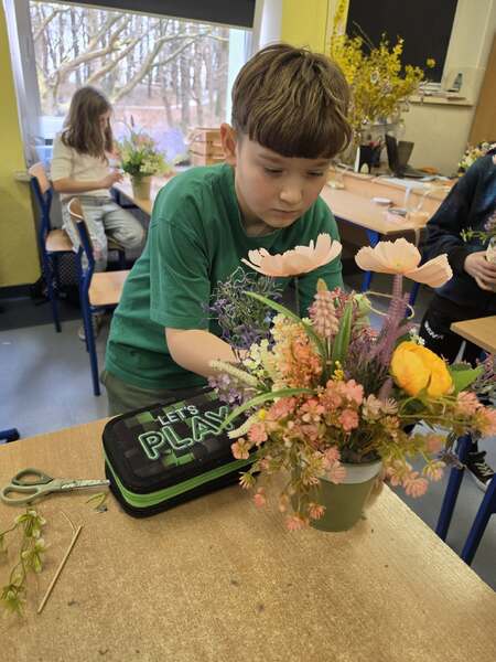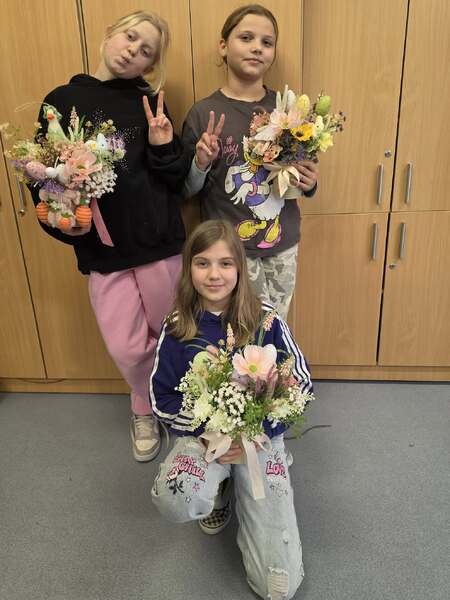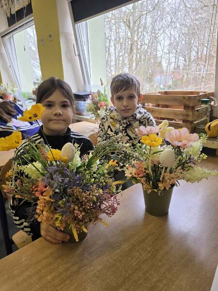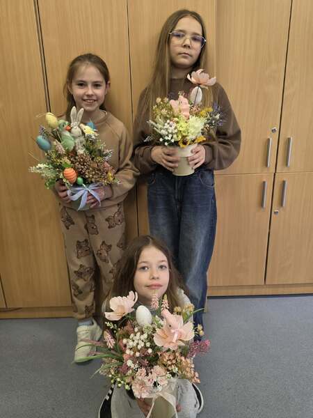 Ponadto uczniowie wzięli udział w warsztatach wielkanocnych, podczas których stworzyli przepiękne stroiki. Kolorowe ozdoby i ogromna dawka kreatywności sprawiły, że powstały prawdziwe małe dzieła sztuki, które wprowadzają świąteczny nastrój.