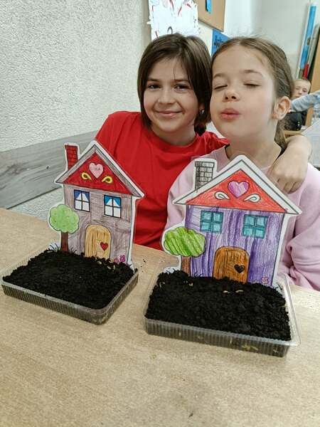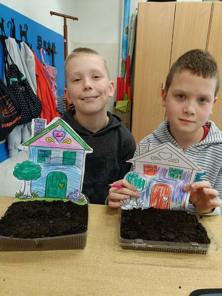 W ostatnim czasie założyli własną hodowlę owsa. Dzieci z dużym zaangażowaniem obserwowały, jak rośliny rosną każdego dnia, ucząc się przy tym odpowiedzialności i cierpliwości. To doskonała okazja do poznawania przyrody w praktyce!
