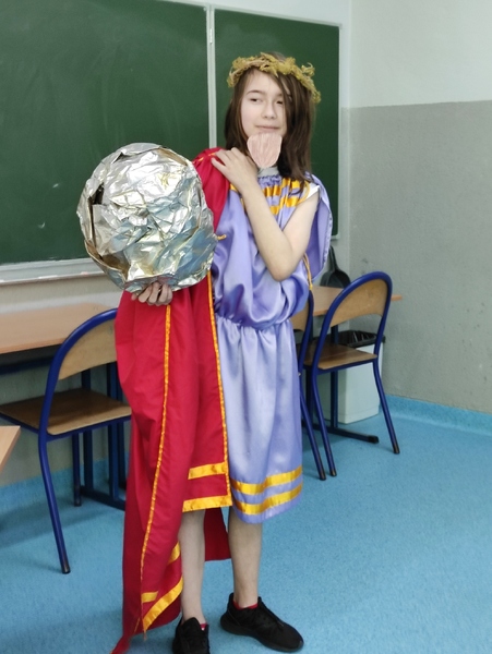 02 czerwca 2022r. uczniowie klas piątych darłowskiej ,,Trójki” przystąpili do udziału w Szkolnym Konkursie Mitologicznym. W pierwszej części przedstawiciele klas zaprezentowali wylosowaną wcześniej postać mitologiczną. Ocenie podlegał strój przygotowany przez uczestników, rekwizyty oraz sposób przedstawienia danej postaci.