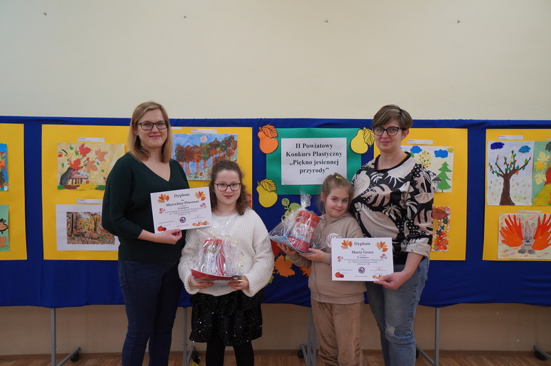 2.01.2024 r. odbyło się uroczyste spotkanie, podczas którego zostały rozdane nagrody i dyplomy laureatom i wyróżnionym w II Powiatowym Konkursie Plastycznym „Piękno jesiennej przyrody”.