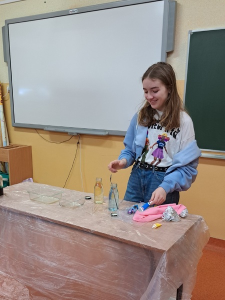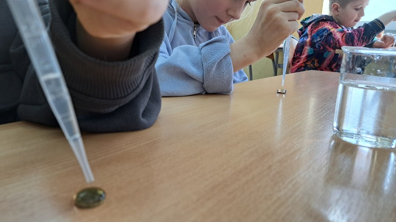 Młodsi uczniowie, w ramach lekcji biologii i przyrody, poznawali niezwykłe właściwości wody oraz poszerzali wiedzę na temat jej roli i znaczenie w życiu człowieka. Uczennice koła biologicznego zaprezentowały swoim kolegom ciekawe doświadczenia fizyko-chemiczne, a uczennice koła chemicznego przygotowały zajęcia dla uczniów klasy 3C.