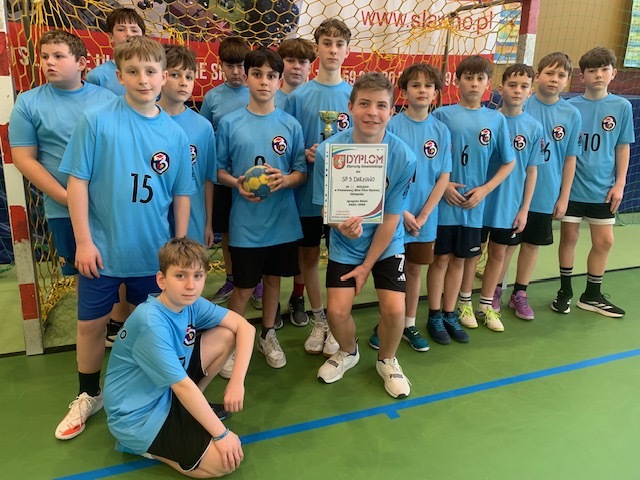 Jeszcze nie zdążyły opaść emocje dnia wczorajszego z zawodów dziewcząt, a już chłopcy dnia następnego przystąpili do zmagań sportowych w piłce ręcznej o tytuł Mistrza Powiatu w ramach Igrzysk Dzieci. Mecze rozgrywano systemem „każdy z każdym” o niezwykle wysokiej intensywności gry. Kibice mogli obejrzeć emocjonujące mecze, pełne dramaturgii i ogromnego zaangażowania zawodników. Reprezentanci naszej „Trójki” pokazali niesamowitą formę oraz wysokie umiejętności indywidualne. Wykazali się niezwykłą dynamiką i wytrzymałością, siłą fizyczną, koordynacją ruchową oraz odpornością psychiczną. Po zaciętej rywalizacji i emocjach do ostatniej minuty, sięgnęli po srebro ulegając jedynie minimalną różnicą bramek drużynie ze Sławna. Postawa chłopaków zasługiwała na szczególną uwagę, biorąc pod uwagę utratę czołowego zawodnika już w pierwszej połowie pierwszego meczu z powodu kontuzji.