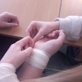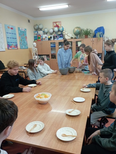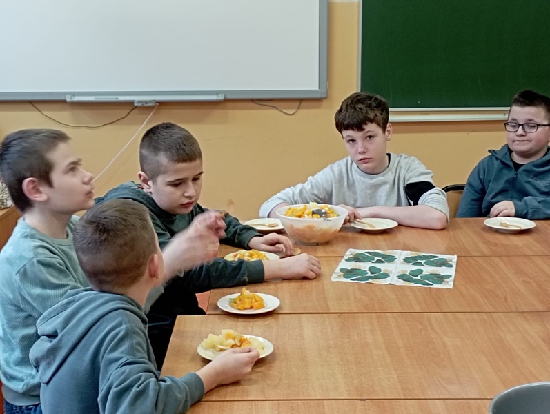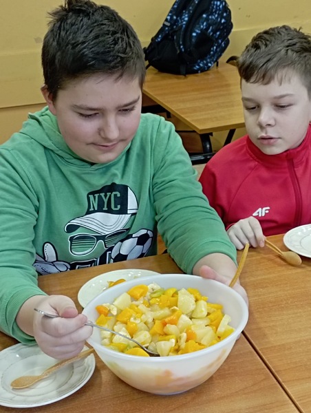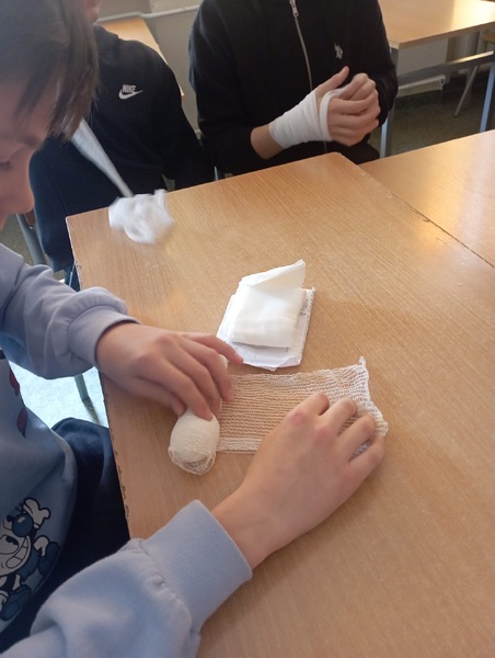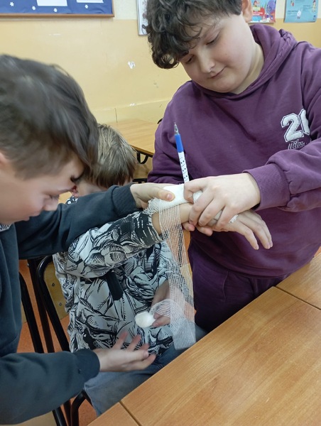 Na zajęciach z edukacji zdrowotnej dzieje się wiele ciekawych wydarzeń. Kolejne lekcje praktyczne, a więc nauka bandażowania ran ciętych i kłutych oraz przygotowanie sałatki owocowej na drugie śniadanie oraz orzeźwiającej lemoniady z cytrusów.