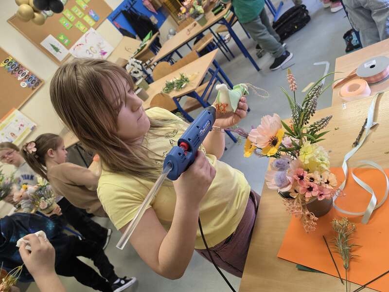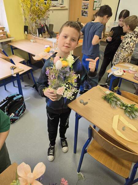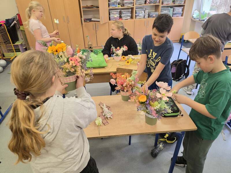 Ponadto uczniowie wzięli udział w warsztatach wielkanocnych, podczas których stworzyli przepiękne stroiki. Kolorowe ozdoby i ogromna dawka kreatywności sprawiły, że powstały prawdziwe małe dzieła sztuki, które wprowadzają świąteczny nastrój.