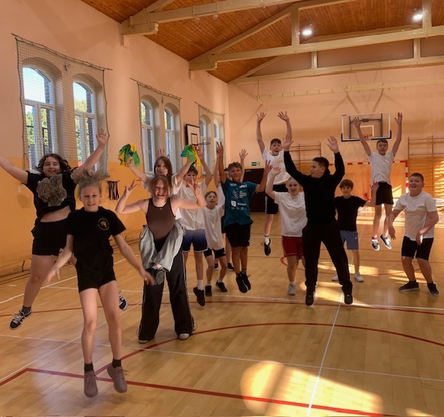 Klasy 6-8 rozpoczęły ten dzień wspólną rozgrzewką taneczną. Pojawili się również chętni uczniowie i uczennice, którzy odtańczyli Belgijkę. Jeszcze inni przy muzyce wirowali i tańczyli. Na lekcjach wychowania fizycznego organizowane były różnego rodzaju aktywności fizyczne. Uczniowie uczestniczyli w różnorodnych zabawach i konkurencjach sportowych. Biorący udział w tym wydarzeniu wykazali się wielkim zaangażowaniem. Z ogromnym entuzjazmem podchodzili do zadań sportowych. Był to bardzo pozytywny dzień pełen ruchu, zabawy i pozytywnej energii. Przebiegał w radosnej atmosferze, której towarzyszyły dobre emocje i sportowy duch. Wszyscy byliśmy razem, w myśl idei „Ruch łączy”. Pokazaliśmy, że razem możemy więcej.