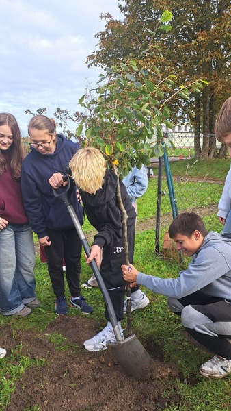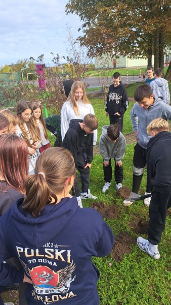W październiku świętowaliśmy Dzień Drzewa. Nasze działania miały na celu zwiększenie świadomości uczniów, jak istotną rolę pełnią drzewa i inne rośliny w życiu i funkcjonowaniu naszej planety. Uczniowie klas 4 poznali drzewa i krzewy najbliższej okolicy. Wykonali prace, które w przyszłości pozwolą im rozpoznać dany gatunek. W szkolnym ogrodzie uczniowie kl 7 posadzili oczar, niezwykłą roślinę kwitnącą w okresie zimowym i wykorzystywaną w preparatach kosmetycznych ze względu na właściwości ściągające. Następnie, na lekcjach chemii, próbowali wyekstrahować olejki eteryczne znajdujące się w liściach mięty oraz rozdzielić barwniki roślinne. W tym celu wykorzystali poznane na lekcjach metody rozdziału mieszanin.