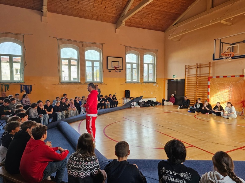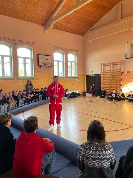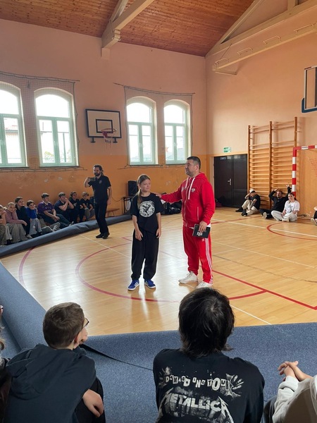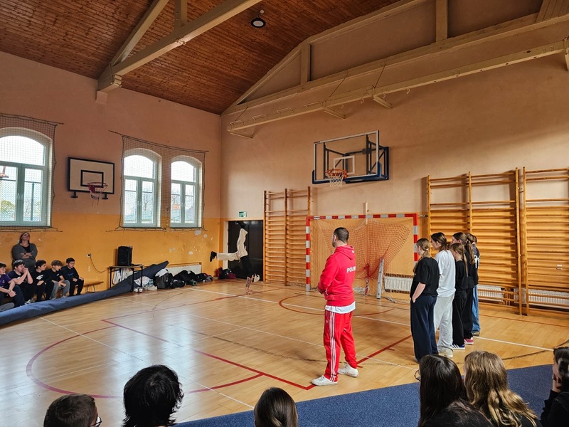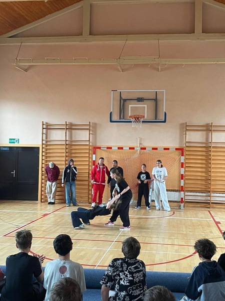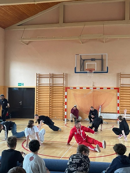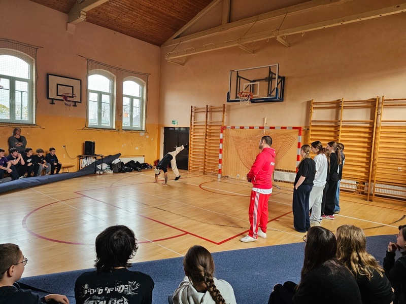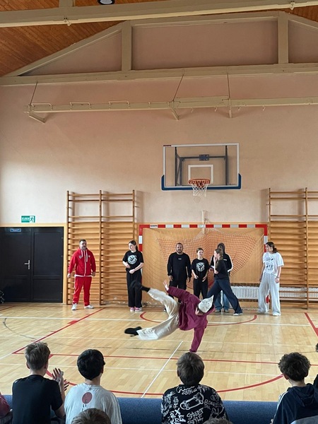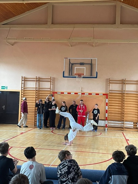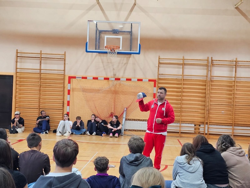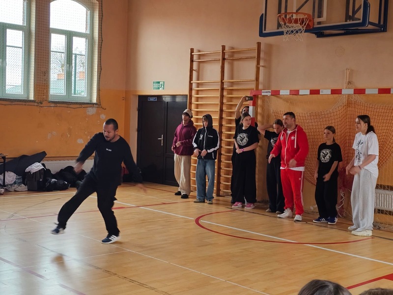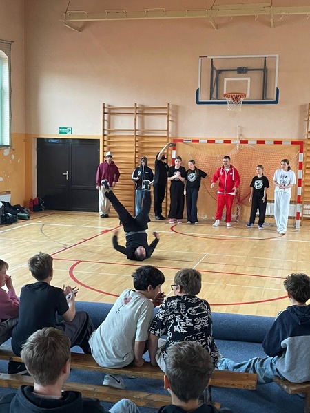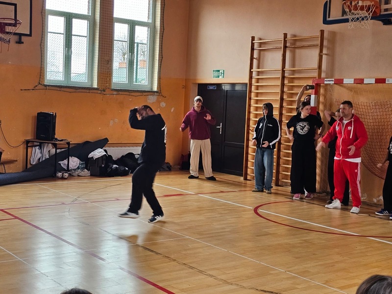 W ramach Kampanii „Dzieciństwo bez przemocy” Pan Robert Gorgol z Darłowskiego Ośrodka Kultury zaprosił na zajęcia profilaktyczne Szkołę Tańca N.A.S.A pod kierunkiem Instruktora Marcina Grzybowskiego. W dniu 04 listopada 2025 r. uczniowie klas 6-7 uczestniczyli w warsztatach pod hasłem „Taniec łączy, hejt dzieli”, których celem było nie tylko promowanie pasji i rozwoju osobistego, ale także szerzenie świadomości na temat hejtu i sposobów radzenia sobie z nim.