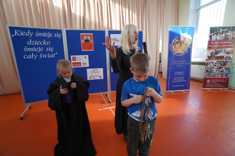 5 listopada w naszej szkole odbyło się wyjątkowe spotkanie z sędzią Anną Marią Wesołowską – znaną nie tylko z popularnego programu telewizyjnego „Sędzia Anna Maria Wesołowska”, ale również z ogromnego zaangażowania w edukację prawną dzieci, młodzieży, rodziców i nauczycieli. W wydarzeniu uczestniczyli uczniowie klas 1- 8, a także rodzice i nauczyciele. Spotkanie odbyło się dzięki wsparciu finansowemu Miasta Darłowa w ramach ogólnopolskiej kampanii „Dzieciństwo bez przemocy”.