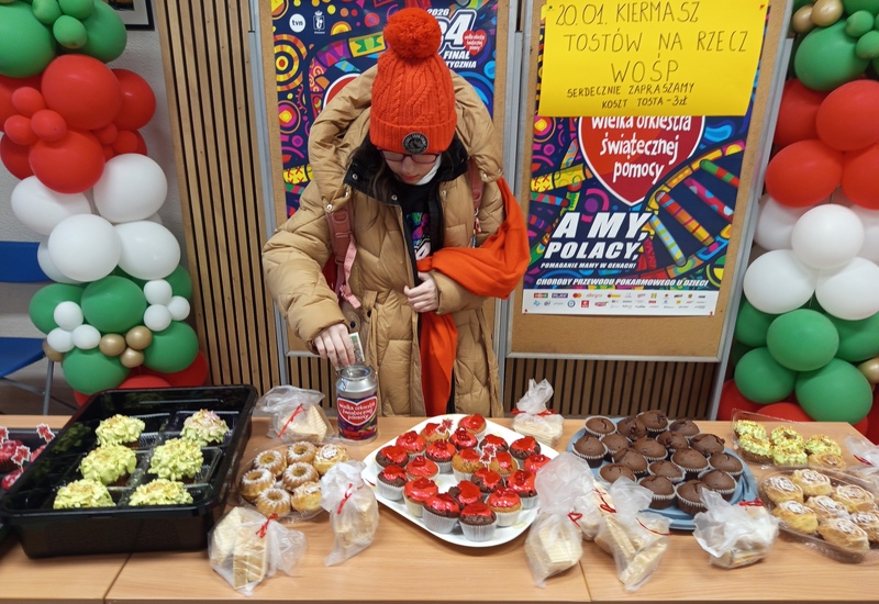 W tym dniu wolontariusze ze Szkolnego Klubu Wolontariusza „Pomocna dłoń” wykazali się dużym zaangażowaniem. Podczas przerw przygotowywali pyszne tosty, aby w ten sposób wspomóc 34 Wielką Orkiestrę Świątecznej Pomocy.