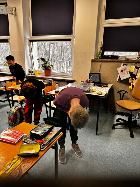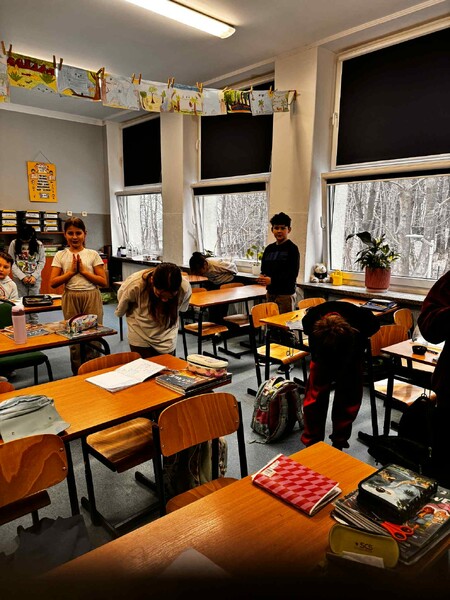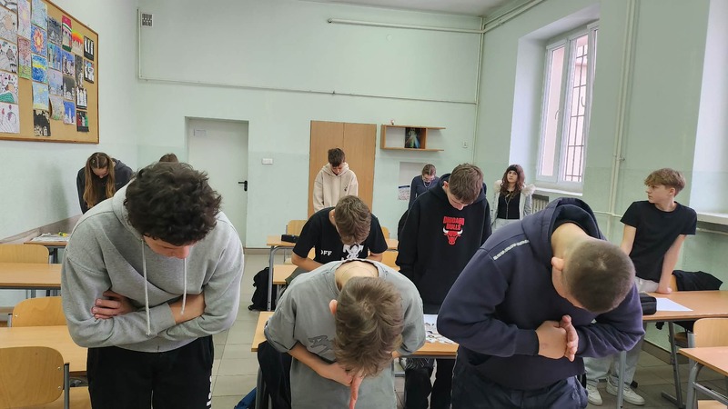 Spróbowaliśmy dziś kłaniać się do siebie, dziękując, mówić do widzenia, odchodząc od tablicy, mijając się na korytarzu. Do ukłonu dodawaliśmy uśmiech.