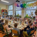 Po świątecznym śniadaniu czas na zabawę. Dużą radość sprawiło dzieciom malowanie jajek, podczas którego mogły wykazać się kreatywnością i wyobraźnią. Następnie odbył się wesoły bieg z jajkami na łyżkach, który dostarczył wszystkim dużo śmiechu i emocji, nie zabrakło turlania jajek na czas. Na zakończenie zorganizowano tradycyjną „bitwę na jajka”, czyli zabawę polegającą na stukaniu się pisankami.